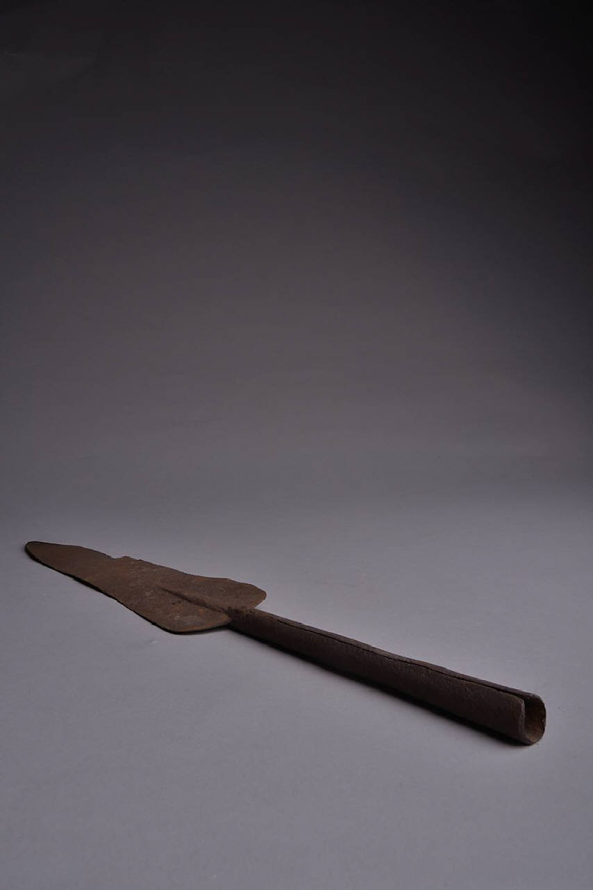 Ferro di lancia con gorbia tubolare aperta che prosegue nella nervatura della base della cuspide a due fili concavi per quasi tutta la loro lunghezza e concavi nella porzione di punta finale.