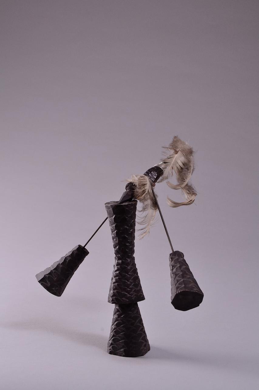 Figura femminile in legno, piuma e filo di piombo, detta ballerina.