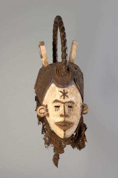 - NOTIZIE STORICO CRITICHE Queste maschere colore bianco (caolino) dai tratti sottili e dall'acconciatura elaborata sono incarnazioni degli spiriti fanciulla e ne celebrano la bellezza, la gioventù, la benevolenza. Si contrappongono dal punto di vista sia estetico che simbolico alle maschere nere che invece rimandano agli anziani, al potere maschile, alla notte e alla morte. L'acconciatura è quella delle donne igbo, una vera e propria costruzione scultorea realizzata con capelli fissati su un'intelaiatura in cui vengono inseriti pettini, forcine, amuleti. Acconciature elaborate vengono anche realizzate impastando i capelli con argilla e olio di palma per modellarne i volumi. Queste acconciature che non consentono di portare pesi sulla testa (come invece avviene normalmente per le donne che lavorano) vengono portate solo in particolari occasioni
