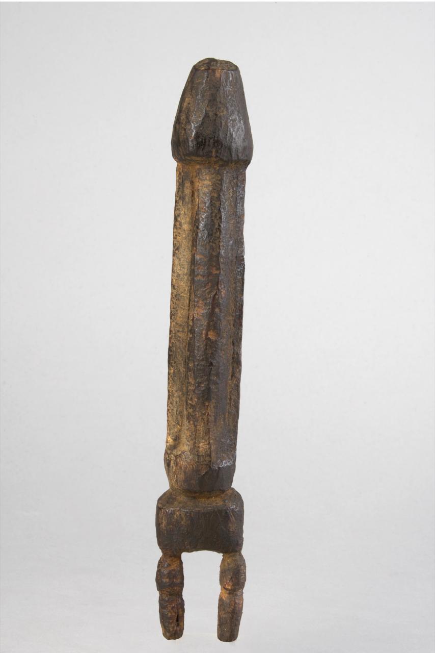 STATUA antropomorfa (e fallica) con testa cupoliforme, lungo torso diritto, braccia aderenti al busto e piegatura terminale a indicare le mani. Bacino e gambe ridotti a brevi appendici.