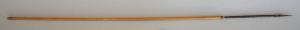 Freccia con asta di bambù e punta in legno su cui sono infissi due frammenti d'osso. Punta doppia.