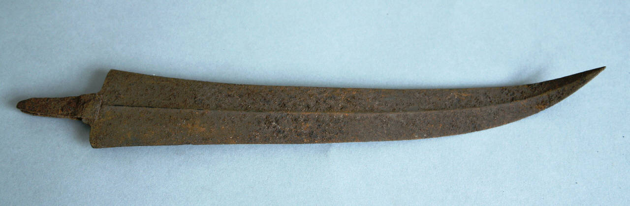 Lama sinuosa con cresta centrale. I fili scorrono curvi dal forte a tutto il medio in una direzione per poi convergere nel debole a punta acuta in direzione opposta. Breve codolo centrale triangolare.