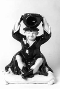 - NOTIZIE STORICO CRITICHE Nell'inventario della Manifattura Clerici queste sculture sono citate tra le "figure diverse" come "Pagò per orologio".\nGregorietti nota che si tratta di "una libera interpretazione di divinità cinesi apportatrici di buona ventura e tale concetto viene legato al tempo segnato dall'orologio". Se l'ispirazionedei magot ai budda orientali è condivisa da tutte le manifatture di ceramica europee, sia di maiolica che di porcellana, invece è assolutamente originale la funzione che i pezzi milanesi assolvono.\nQueste sculture veniva sicuramente modellate a stampo in due parti poi giuntate verticalmente; le altezze variano tra i 30 e i 35 cm. Se ne conoscono diversi esemplari: alcuni semplicemente ricoperti di smalto stannifero, ma più spesso la veste o gli stivali sono rivestiti di smalti colorati in giallo o blu, venivano poi decorati "ad oglio", cioè con colori applicati a freddo, con motivi policromi di fiori recisi e dorature.