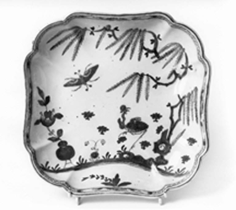 - NOTIZIE STORICO CRITICHE I pittori milanesi hanno probabilmente derivato la cosiddetta decorazione "allo struzzo" da " Xian he", la gru delle porcellane orientali simbolo della longevità.\nGli elementi che caratterizzano tale decorazione sono rivestiti nel mondo orientale di precise simbologie, ma in tutte le manifatture settecentesche uropee si fa libero uso di tali elementi esotici, senza considerare le loro valenze simboliche.