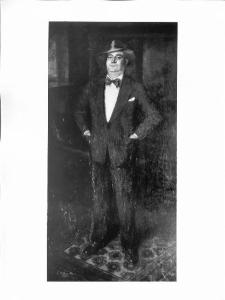 - NOTIZIE STORICO CRITICHE Nato a Milano nel 1889 da una famiglia modestissima, rimasto orfano di padre, Angelo Rizzoli fu per undici anni allievo dell'Orfanotrofio maschile dove apprese il mestiere di tipografo. Dopo varie esperienze come fattorino ed operaio acquistò una modesta tipografia fino a diventare il fondatore della casa editrice Rizzoli. Nel 1931 fece una donazione di 100.000 lire in seguito alla quale venne commissionato questo ritratto. L'opera venne eseguita da Leondardo Dudreville, pittore ma anche appassionato di musica e critico d'arte. Il personaggio è raffigurato in un interno borghese, in piedi, vestito elegantemente con abito scuro, papillon e cappello, le mani in tasca, il volto dai tratti intensi e dallo sguardo fiero. L'artista dopo essere stato vicino al gruppo divisionista di Grubicy e aver fondato nel 1914 insieme a Erba, Funi e altri "Nuove Tendenze", si volse quindi ad un programmatico Realismo, partecipando nel '22 al primo gruppo novecentista milanese.