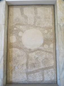 - NOTIZIE STORICO CRITICHE I 10 pannelli sono stati realizzati nel 1951 da Gino Bozzetti (Brescia, 1926 - 2014), disegnatore ed architetto, in occasione del riallestimento del Museo a seguito dei danni subiti durante i bombardamenti della Seconda Guerra Mondiale. Il progetto di restauro dell'entrata del Museo e dello scalone che porta all'atrio dell'Aula Magna venne firmato dall'architetto Egizio Nichelli. E' da segnalare che Bozzetti era stato allievo del Nichelli presso il Politecnico di Milano, dove seguì i suoi seminari sul restauro architettonico; collaborò poi con il maestro a importanti cantieri milanesi. Tornato a Brescia si occupò di restauro conservativo (esempi di suoi interventi bresciani sono Palazzo Martinengo e la chiesa di San Giorgio), pur non tralasciando l'attività di disegnatore che sembra attestata anche da altre opere grafiche.\nI pannelli illustrano l'evoluzione del mondo e della vita, dall'origine dell'universo alla comparsa dell'uomo e alle prime fasi della sua civiltà. Secondo la testimonianza del Direttore del Museo di Storia Naturale negli anni '60, lo zoologo Cesare Conci (Il Museo Civico di Storia Naturale di Milano, Banca Popolare di Milano, 1978, p. 19), il Bozzetti si avvalse della consulenza scientifica di Vittorio Vialli (Cles, 1914 - Bologna, 1983), a quel tempo paleontologo del Museo che qualche anno più tardi ne divenne anche vicedirettore, per trasferirsi successivamente a Bologna, dove insegnò Paleontologia e fu Direttore dell'Istituto di Geologia e Paleontologia presso quella Università. \nIl Vialli deve aver dunque aiutato il giovane artista nella scelta dei soggetti da rappresentare. Nel ciclo pittorico viene narrata la storia del nostro pianeta dalla formazione dell'universo fino alla forma attuale, passando attraverso le varie tappe evolutive degli organismi viventi e facendo riferimento a fossili ritrovati in giacimenti di tutto il mondo e di ogni epoca. Non mancano i rimandi al lavoro di Vialli in Museo e alle collezioni museali, come ad esempio ai mammiferi delle Pampas argentine o all'orso delle caverne delle nostre Alpi. Ben tre pannelli sono dedicati all'evoluzione dell'uomo, le cui tappe sono individuate dalle conquiste tecniche e dallo sviluppo culturale: dalla caccia e dall'adozione dei primi rudimentali attrezzi alle tecniche per l'allevamento e l'agricoltura; dalla lavorazione della pietra a quella dei metalli; dalle prime sculture litiche ai manufatti in ceramica. Infine, l'ultimo pannello raffigura i continenti abitati dall'uomo e le due regioni polari (dall'alto: il polo nord, l'Europa, l'Africa, l'America, l'Asia e l'Australia, il polo sud). \nI pannelli sono tutti numerati, siglati e datati; sono inseriti entro nicchie ricavate all'interno del rivestimento marmoreo che decora il grande locale di ingresso al Museo e le pareti dell'atrio dell'Aula Magna, in posizione ben visibile al pubblico. Si tratta di pannelli di grandi dimensioni, 426 x 216 cm, soltanto i due posti all'inizio dello scalone sono leggermente più bassi. Il pannello oggi posto all'interno dell'Aula Magna era posizionato, fino agli anni '80 del secolo scorso, accanto agli altri nell'atrio del primo piano, in corrispondenza dell'attuale porta d'accesso centrale alla sala conferenze.\nIl supporto dei pannelli è formato da compensato di legno, su cui è stato steso un sottile strato di preparazione alla pittura. Sono state riscontrate macchie di sporco, abrasioni e buchi talvolta abbastanza grandi (2-5 cm) che lasciano intravedere il compensato sottostante. Nei casi più gravi le abrasioni sono particolarmente estese, soprattutto lungo linee orizzontali. \nSono inoltre rintracciabili evidenti ed estesi interventi conservativi, volti a restaurare in modo piuttosto sommario le parti danneggiate nel corso dei decenni. Questi interventi sono riconoscibili per il colore bianco del materiale utilizzato, molto diverso dalla cromia dei colori originali, ancora conservata nel pannello n. 8, apparentemente il meno danneggiato.