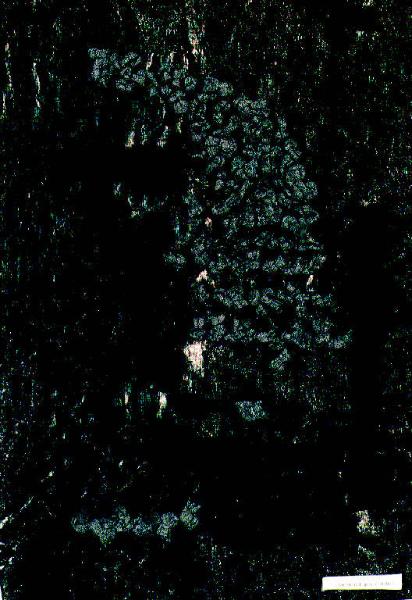 Opera caratterizzata da una composizione di nodi in stoffa nera e grigia su stoffa argentata. Il retro è costituito da una serigrafia di ritagli di articoli di giornale su stoffa.