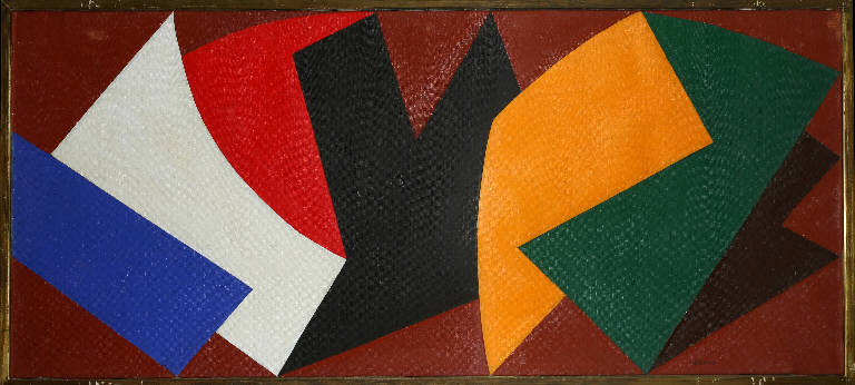 Opera pittorica daratterizzata da una composizione di poligoni irregolari a colore piatto disposti lungo una direttrice orizzontale. L'opera è lo studio conclusivo dell'affresco riprodotto sulla copertina del Bollettino n.15 del M.A.C.1953. Colore caldo e stesura piatta. Forma: geometrica (poligono irregolare). Struttura: dinamica.