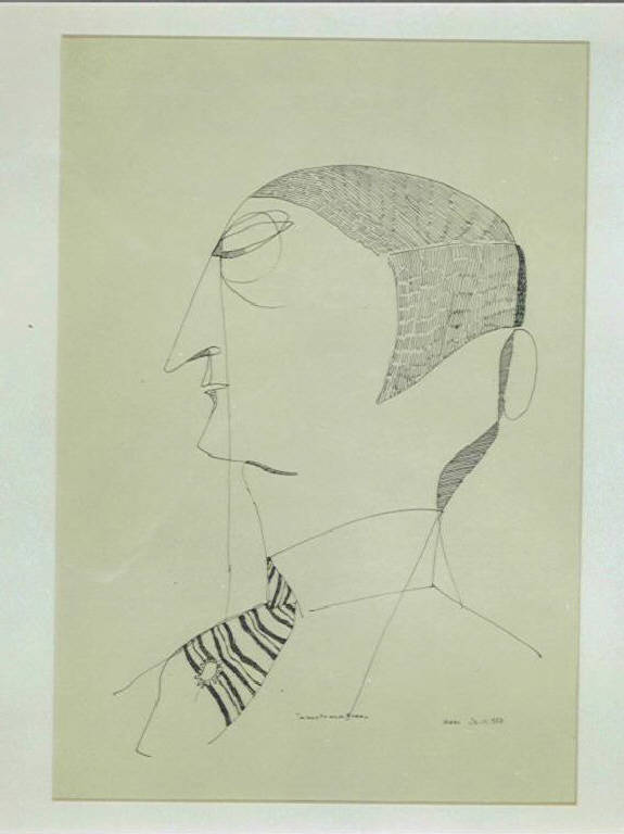 Opera pittorica che rappresenta solo con un sottile contorno nero il profilo di un uomo. Colore: bianco e nero.