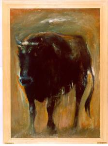 Opera pittorica che rappresenta un toro. Il colore è tonale, caldo (bruni). La stesura è irregolare, veloce, a macchia.