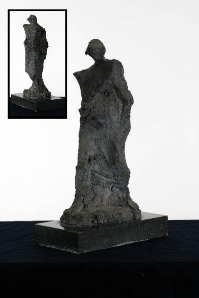 Opera a tutto tondo a forma di figura femminile. La materianon levigata, presenta asperità.
