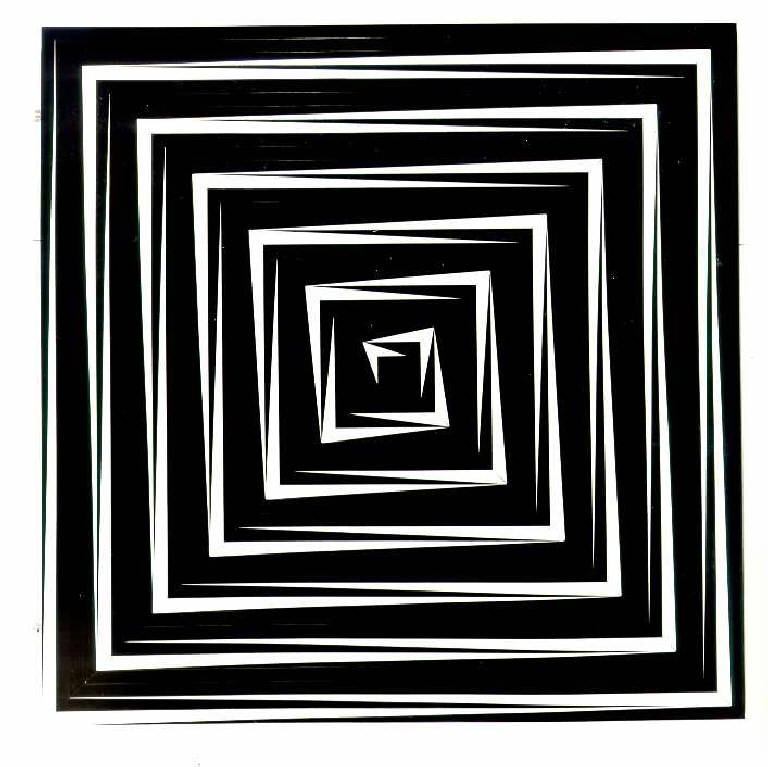 Quadrato in legno bianco e nero che aumenta in profondità man mano si procede verso il centro.