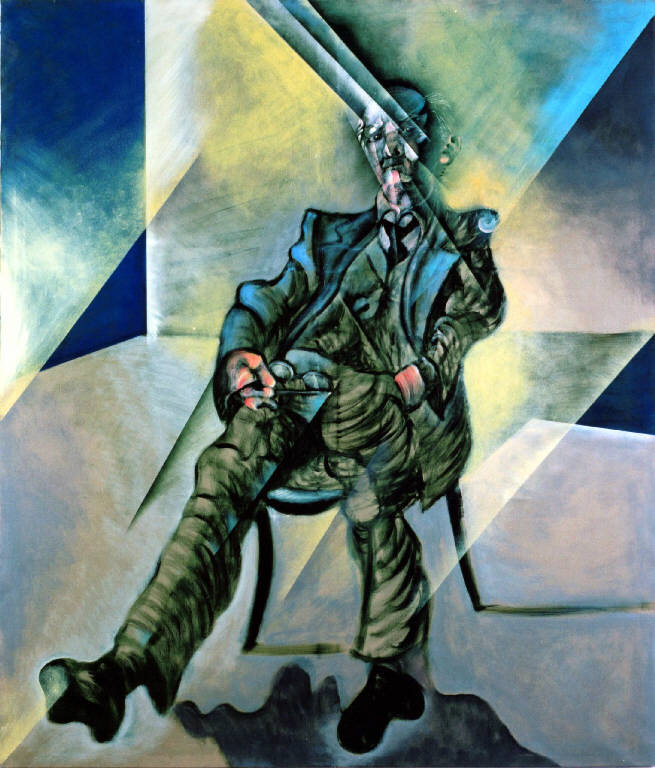 Opera pittorica di grandi dimensioni che rappresenta il ritratto di Silvio Zanella. La figura è mossa, scomposta, dinamica, descritta prevalentemente con una linea curva.