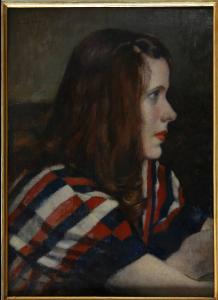 Opera che rappresenta il ritratto di una giovane donna. La giovane è rappresentata di profilo con lo sguardo fisso davanti a sè. I colori sono accesi: spiccano il bianco, il rosso e il blu della sua maglia a righe e il rosso delle labbra. I tratti della fanciulla sono dolci e delicati. Lo sfondo è pressocché inesistente: la sola protagonista dell'opera è la giovane ragazza. La pennellata è decisa e corposa; la luce si riflette tutta sul volto della fanciulla, regalandole un incarnato pallido e fresco.