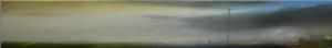 Visione panoramica di un paesaggio con diversa gradazione di luce e illuminazione da sinistra a destra. Nella parte diurna l'illuminazione è chiara e soffusa, in quella notturna è soprattutto concentrata nei punti di luce artificiale creati dai lampioni. Nella parte diurna si vedono solo in lontananza delle piccole case e qualche albero. Nella parte notturna i soggetti si avvicinano, le case, le macchine e i pali della luce sono in primo piano.