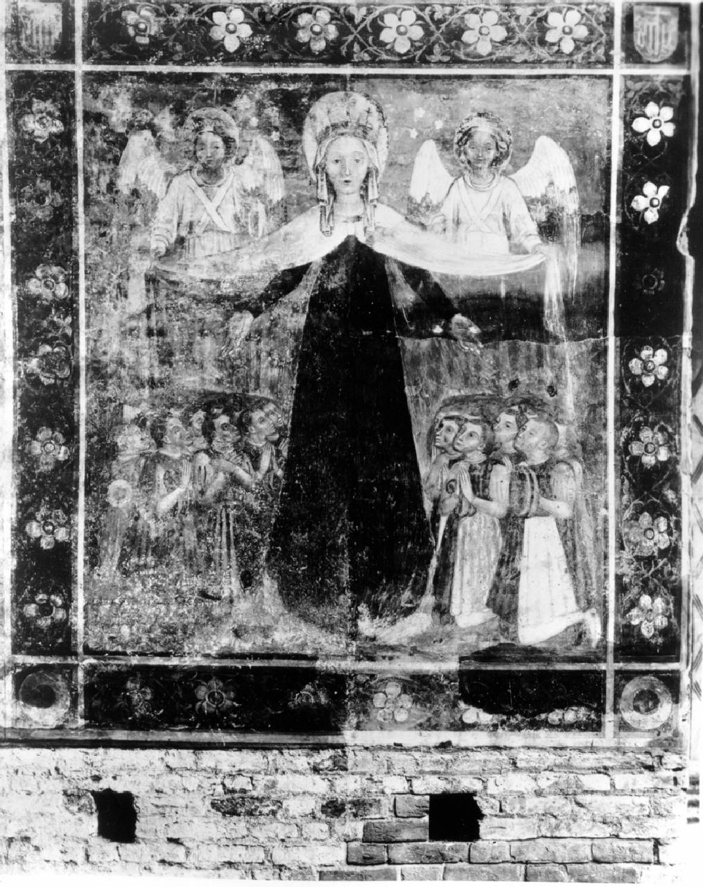 - NOTIZIE STORICO CRITICHE Le fotografie degli inizi del secolo mostrano un'immagine più completa e diversa nei controni secchi e sgraziati dei volti dei fedeli e in alcuni particolari (per esempio i diademi degli angeli). Da ciò, e dal fatto che nella documentazione sullo strappo si parli di rimozione di vecchi restauri, si deduce che il dipinto fu oggetto di integrazioni pittoriche forse subito dopo la riscoperta. In questo senso testimoniano anche le discordanze fra le prime descrizioni.