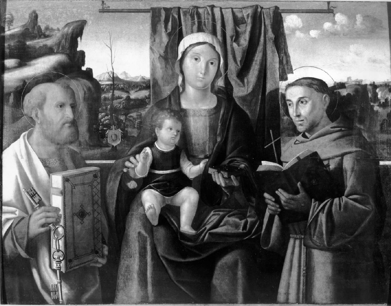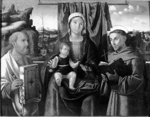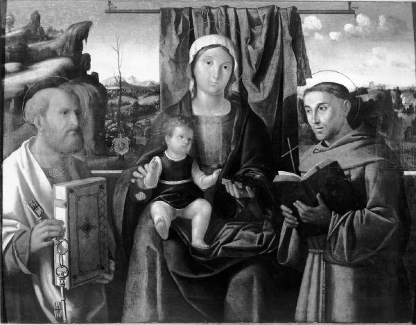 Madonna col Bambino tra i Santi Pietro e Francesco d'Assisi. Madonna con Bambino in Trono con San Pietro e San Francesco d'Assisi