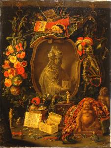 - NOTIZIE STORICO CRITICHE Questo rame raffigurante l'"Allegoria dell'Asia" (firmato e datato 1667) e il suo pendant con l'"Allegoria dell'America" (inv. 759) sono significativa testimonianza della collaborazione tra Erasmus Quellinus II e Jan van Kessel I che ebbe luogo a partire dalla metà del settimo decennio del XVII secolo, momento in cui si datano altre opere innovative e virtuosistiche dei due pittori anversesi, come la serie di originalissimi dipinti su rame raffiguranti i "Quattro Continenti", oggi a Monaco (Alte Pinakothek; inv. nn. 1910-1913). Iconograficamente i due dipinti milanesi sono costruiti secondo un modello prossimo a quello proposto dai "thesauri exoticorum" letterari, ovvero attraverso il ricorso ad "allusioni figurate" alla produzione artistica, alle manifatture locali, ai corredi militari tipici del continente che si rappresenta. La personificazione del continente asiatico posta all'interno dellaoc rnice modanata è una figura femminile vestita alla turchesca recante in mano uno scrigno colmo di gioielli. Tutt'intorno il dispiegarsi allegorico di oggetti allusivi alla flora, alle manifatture, all'arte militare, nonchè alla religione seguite in Oriente. Le due opere del Castello facevano parte di una serie completa dei Quattro Continenti comprendente anche l'"Allegoria dell'Europa" e l'"Allegoria dell'Africa". E' ipotizzabile che uno dei rami smembrati della serie possa riconoscersi nella cosiddetta "Vergine contornata da simboli di Vanitas" di collezione privata belga (foto Londra, Witt Library), da leggersi in realtà come "Allegoria dell'Europa" (personificata nella Chiesa di cui Maria Vergine è regina). Qualora l'ipotesi fosse corretta si avrebbe un ulteriore elemento riguardo alla circostanza di committenza del prezioso insieme smembrato: nell'"Allegoria dell'Europa" sopra menzionata infatti, sotto al cartiglio recante il nome di Alessandro VII, un foglietto con l'iscrizione "Martino Ambrosio Capello" - che fu vescovo di Anversa nel periodo in cui i dipinti vennero realizzati - fornirebbe il nome del possibile committente dei quattro rami.