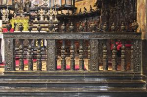 - NOTIZIE STORICO CRITICHE Questa balaustrata in bronzo fuso, decorata da eleganti motivi classici a rilievo, è un unicum per la preziosità del materiale e per la ricchezza dell'ornamentazione, degna donazione dei ricchissimi mercanti Giovanelli, che proprio alla fine del Cinquecento raggiunsero l'apice della ricchezza e del prestigio sociale. Proprio i tre committenti della balaustrata, i fratelli Andrea, Nicolò e Silvestro, insieme a Pietro ottennero dall'imperatore Rodolfo II il titolo di nobili del Sacro Romano Impero. I tre dichiararono esplicitamente nell'iscrizione sulla balasutra che tale donazione era fatta "in onore della santissima Genitrice di Dio per gli innumerevoli e massimi doni loro fatti". Come attesta l'iscrizione, Lagostino era di Epidauro, antico nome di Ragusa (Dubrovnik) in Dalmazia, per la precisione era dell'isola di Làgosta compresa nella libera Repubblica di Ragusa. Si chiamava Francesco Antizza di Lagosta, era famoso come fonditore di cannoni, di campane e di opere d'arte a Ragusa e in Italia dove si firmava Francesco Lagostino. Dopo l'esecuzione delle balaustrate Lagostino si fermò a Gandino dove presumibilmente si sposò con una certa Giulia che gli dette quattro figli, tutti nativi di Gandino e in gran parte battezzati con un padrino appartenente alla famiglia Giovanelli. Tra i figli ci fu Gaudenzio che praticò la stessa arte e arrivò fino in Polonia. In quegli stessi anni furono commissionate a Lagostino alcune campane, di cui una nel 1593 per il vicario Alessandro Torriani, conservata nel Museo della Basilica, una lampada e altre suppellettili in bronzo. La balaustrata fu leggermente allungata nel 1758.