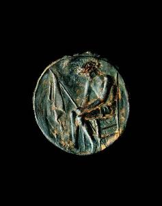 - NOTIZIE STORICO CRITICHE L'opera fa parte di una serie di tre medaglie donate nel 1949 dall'autore Giacomo Manzù al vescovo di Bergamo Adriano Bernareggi. Realizzate nel 1948, erano state esposte alla XXIV Biennale di Venezia dello stesso anno. La scelta di trattare un tema sacro ad alto contenuto drammatico come quello della "Passione di Cristo", già affrontato dall'artista negli anni '30 e '40, derivava dalla volontà del Manzù di denunciare gli orrori della Seconda Guerra Mondiale. L'artista attualizzò i soggetti sacri inserendovi oggetti e personaggi ripresi dal mondo contemporaneo, come la sedia-trono del Cristo deriso e la figura di vescovo modernamente abbigliato presente sia ai piedi della croce nella Deposizione che di fronte al corpo di Cristo morto nella Pietà. Le opere, che si collocano in un particolare momento di maturazione del linguaggio dell'artista, evidenziano il passaggio da un modellato morbido a forme energicamente definite da pochi e profondi solchi. Manzù affrontò nuovamente il tema della Passione di Cristo nel dopoguerra, facendone una sorta di schema meditativo sulla condizione umana.
