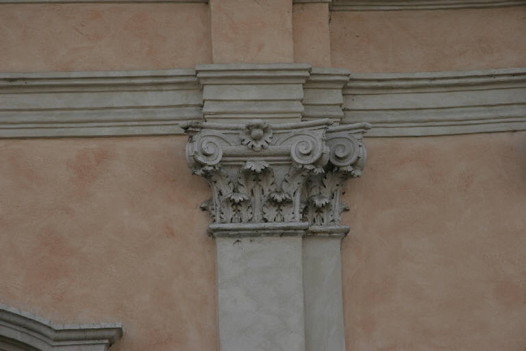 Capitello con decorazioni a volute, foglie d'acanto e rosetta posta al centro della cornice superiore.