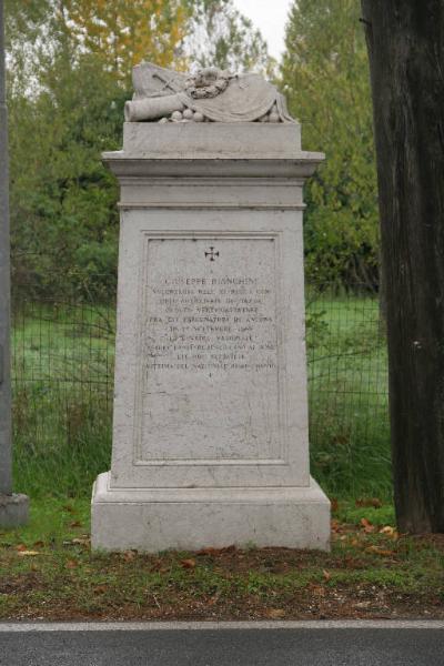 Monumento funerario costituito da un alto plinto di forma quadrangolare concluso da cornice in aggetto. Sul piano di copertura del monumento sono state eseguite sculture di soggetto militare.