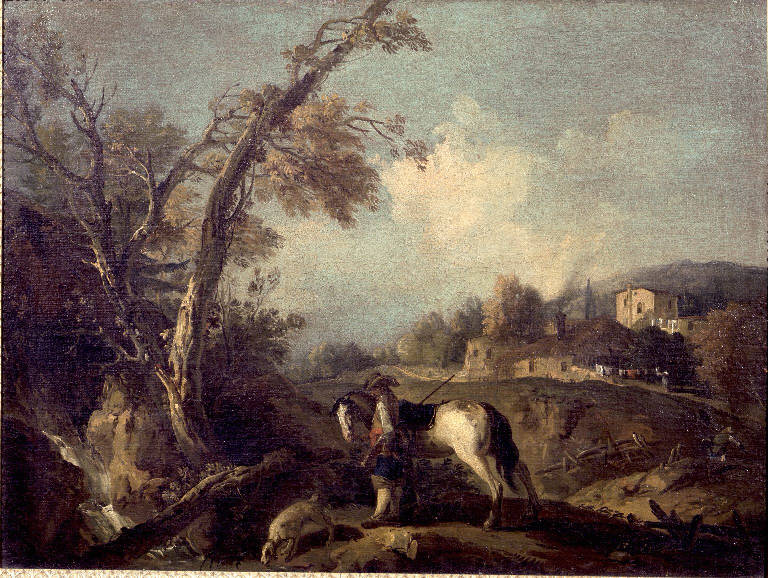 Paesaggio con cacciatore e borgo