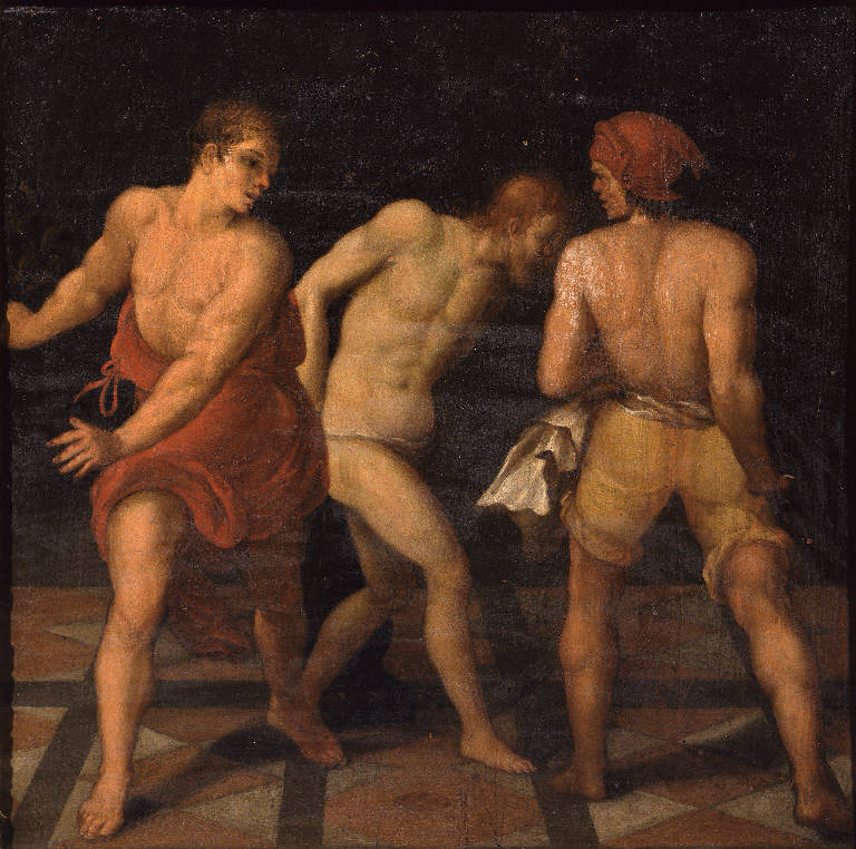- NOTIZIE STORICO CRITICHE Delle composizioni simili si trovano a Carpineto Romano (Chiesa di San Michele Arcangelo), Roma (Ospedale di S. Spirito), Madrid (Museo de Encarnacion, n. 8559), Parigi (Musée du Louvre, n. 25243, olio su tavola), Berlino (Staatliche Museen, Kupferstichkabinett, matita nera e acquerello) e due in asta da Christie's (21 aprile 1950 e 18 luglio 1952).\nL'iscrizione presente al verso è in grafia settecentesca.\nL'opera, riferibile ad ambito lombardo 1593 post-1650 ca., è copia dall'incisione di Augidius Sadeler II (Anversa, 1570 ca.-Praga, 1629), tratta da un disegno del Cavalier d'Arpino e datata 1593. Entrambi sono autori dell'incisione.