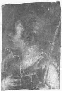 Ragazzo (pastore), a mezzo busro, volto di tre quarti a sinistra, con il viso di profilo; tiene la mano destra al petto e nella sinistra regge un bastone.