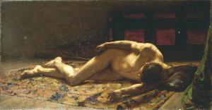 Uomo nudo disteso su un tappeto