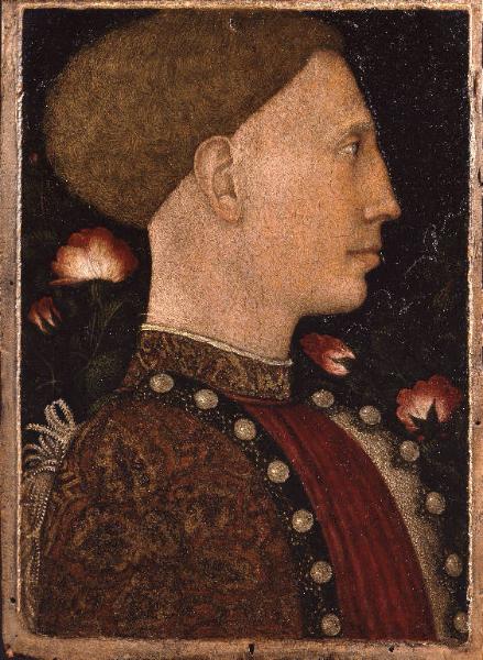 - NOTIZIE STORICO CRITICHE Nell'opera, di straordinaria qualità artistica, è stato riconosciuto il ritratto di Lionello d'Este di Ferrara eseguito da Pisanello nei primi mesi del 1441 in competizione con il pittore Jacopo Bellini, che vinse la gara. La sfida, voluta dal padre di Lionello, il marchese di Ferrara Niccolo III d'Este, fu ricordata dal poeta Ulisse, forse il padovano Ulisse Aleotti, in un sonetto conservato nella Biblioteca Estense di Ferrara. Nell'agosto di quell'anno Pisanello lasciò Ferrara per recarsi a Mantova, ma il dipinto dovette rimanere in città. Se l'ipotesi di un probabile passaggio nella collezione ferrarese del letterato Ludovico Carbone (1430-1485) rimane dubbia, l'opera risulta ancora a Ferrara dopo più di tre secoli nella collezione di Giovan Battista Costabili, dove la vide il Laderchi nel 1838-1841 e come comprova il marchio a fuoco apposto a tergo della tavola. A seguito della dispersione di questa raccolta il dipinto giunse nella collezione Barker di Londra, nella quale fu ammirato da Cavalcaselle e Crowe. Fu merito di Giovanni Morelli se l'opera di lì a poco rientrò in Italia e, dopo la morte di questi, nel 1891 passò all'Accademia Carrara.\nSoprattutto dopo il restauro del 2008 eseguito dall'Opificio delle Pietre Dure che ha liberato il colore da sporco, ridipinture e vernici, l'opera appare caratterizzata da una stesura delicatissima e minuziosa con tonalità fuse e brillanti che restituiscono la dimensione naturalistica del dipinto. Sul blu intenso del cielo del fondo, prima coperto da uno strato di colore nero, si staglia la testa di Lionello dall'incarnato trasparente e luminoso morbidamente ombreggiato. La profondità, sottolineata dal forte scorcio della spalla di Lionello, si dilata nell'intreccio del roseto su cui spiccano vari fiori e boccioli dai colori sfumati, che Pisanello era solito studiare dal vivo.\nSebbene gli fosse preferito il ritratto eseguito da Jacopo Bellini, andato perduto, l'opera in oggetto ha avuto una maggiore fortuna a giudicare dalle derivazioni esistenti: in primis si ricordano le sei medaglie bronzee, derivate da questo ritratto, eseguite dallo stesso Pisanello per Lionello negli anni 1441-1444, a cui si aggiunge la medaglia eseguita da un certo "Nicholaus" (forse Niccolò d'Alemagna) conservata al British Museum di Londra. Alla National Gallery di Londra si conserva una versione pittorica ingrandita del ritratto, firmata da Giovanni Orioli.