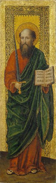 - NOTIZIE STORICO CRITICHE Si tratta dello scomparto destro del Dittico Baglioni. Oggetti collegati: "San Giovanni Evangelista". L'iscrizione del bollo al verso risulta illeggibile.\nE' possibile che il rifacimento dell'oro sia stato effettuato nel corso del XIX secolo.