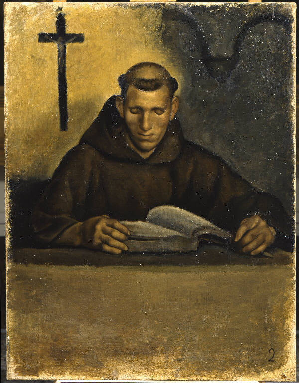 - NOTIZIE STORICO CRITICHE Allievo di Ponziano Loverini e Contardo Barbieri, col quale conclude il proprio percorso scolastico in Carrara. Apprezzabile la solida costruzione spaziale improntata sulla triangolarità che genera la posa del frate; il pittore non lascia spazio a guizzi cromatici, intessendo il dipinto sui toni bruni. L'artista si dedicherà alla decorazione di chiese, facendo del tema sacro l'elemento centrale della propria attività.