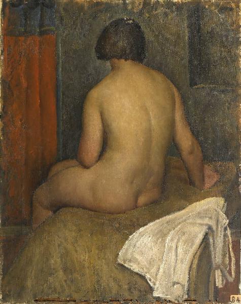 - NOTIZIE STORICO CRITICHE Allievo di Contardo Barbieri. Questa è la prima opera realizzata dall'Assoni tra quelle schedate: 58EL00065 e 58EL00102, eseguite entrambe un anno dopo. Anche in quest'opera rivela il suo interesse per lo studio del corpo femminile in relazione con lo spazio circostante pulito, sospeso, il cui esito ultimo è senz'altro l'elaborato 102. Maggiore insistenza si registra nel delineare un corpo la cui monumentalità non è giocata sui colpi di luce violenti come per Sironi, ma sulla vibrante pennalta del modellato, che modula il delicato colore dell'incarnato.