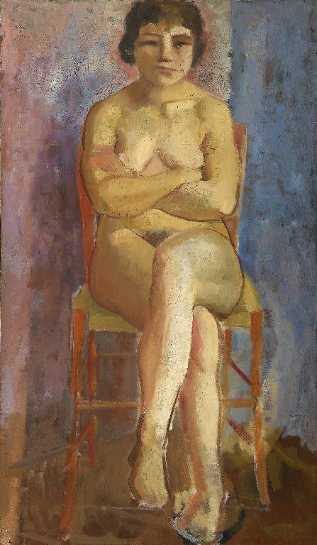 - NOTIZIE STORICO CRITICHE Allievo di Trento Longaretti. Non si hanno molte informazioni biografiche riguardo a questo artista. L'opera qui schedata è di un certo interesse, perchè si discosta dagli studi di nudo fino a qui analizzati, sia per la posa della modella, che siede a braccia conserte di fronte al riguardante, priva di qualunque riminiscenza classica, anzi si direbbe volutamente "anticlassica", sia per il modo di restituirne l'immagine, postcubista.