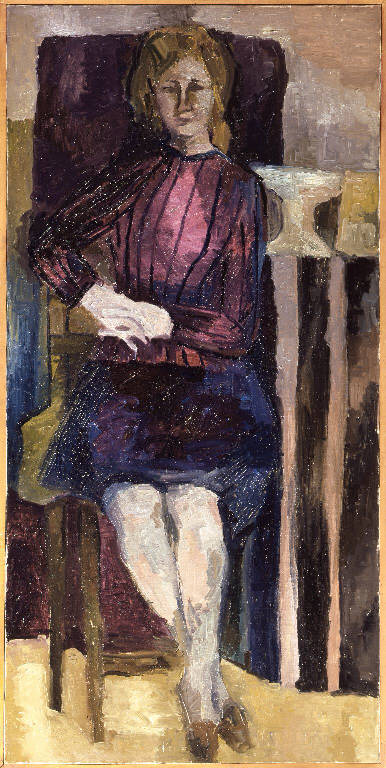 - NOTIZIE STORICO CRITICHE Allieva di Trento Longaretti. Si diploma all'Accademia Carrara nel 1962 e si perfeziona all'Accademia di Brera con Domenico Cantatore. Negli anni di accademia costruisce le solide basi figurative sulle quali poi inposterà una produzione pittorica, che dalla fine degli anni Sessanta è simbolica e segnica, realizzata grazie a un sapiente uso del colore e a una straordinaria percezione della materia. Il ritratto di donna seduta, qui esaminato, è il prodotto di uno studio dal vero, nel quale l'artista cerca di restituire non solo l'immagine del soggetto, ma anche la sua personalità, secondo il portato della ritrattistica tradizionale, mediante la postura e gli oggeti che lo cicondano. Le tinte sono accese e ben controllate, la pennellata è rapida e sicura, rivelando le capacità della giovane pittrice che tra il '60 e il '61 vince il premio Luigi Agliardi e il Premio Accademia Carrara.