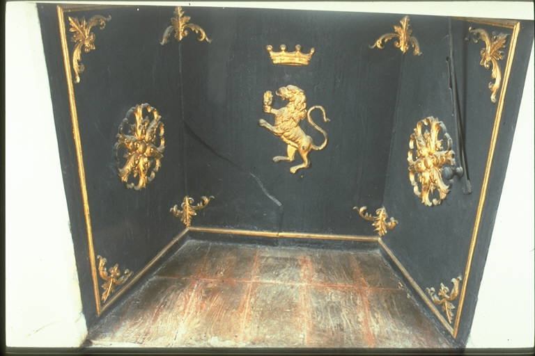 STUCCO MODELLATO, DIPINTO E PARZIALMENTE DORATO