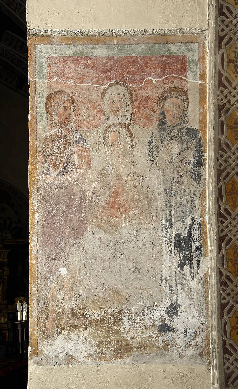 MADONNA CON BAMBINO IN TRONO CON SAN GIOVANNI BATTISTA, SANTA MONACA ? E SAN NICOLA DATOLENTINO