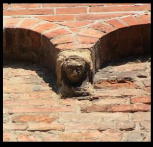 Peduccio a squadra con protome umana (?) raffigurante testa stilizzata.