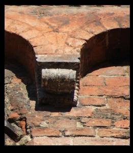 Peduccio a squadra con botticella e cornice a tortiglione.