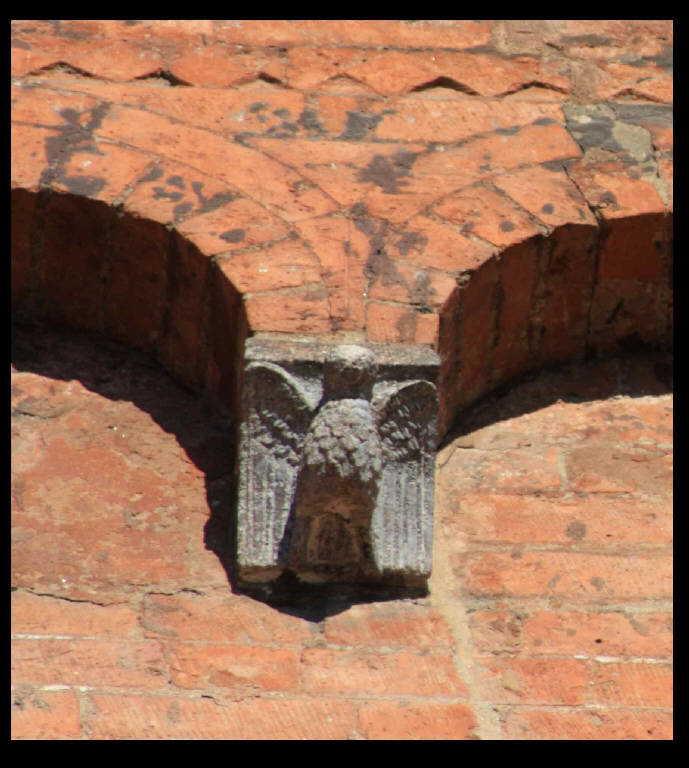 Peduccio a squadra a protome animale con aquila ad ali spiegate.