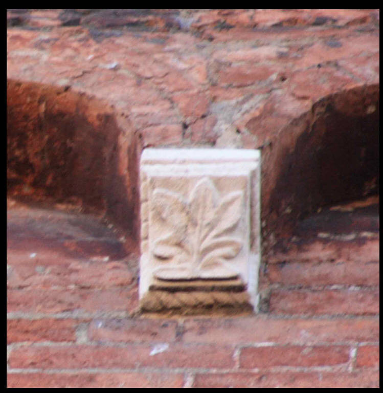 Peduccio a squadra con cuneo liscio caratterizzato da motivo fitomorfo; cornice a tortiglione.