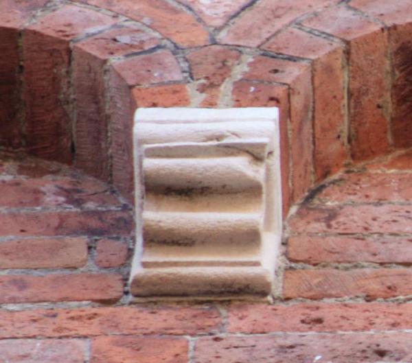 Peduccio a squadra concavo con motivo nastriforme arricciato.