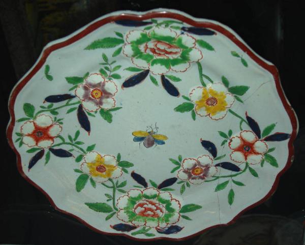 - NOTIZIE STORICO CRITICHE Il piattello rientra nella produzione ceramica milanese di Pasquale Rubati (e Felice Clerici) nota come a 'fiori in rilievo' alla barbottina, databile intorno al 1760. Pasquale Rubati, nella celebre supplica del 1762 alle magistrature cittadine milanesi, si fa vanto di fabbricare in esclusiva questa tipologia di 'maiolica a smalto o sia a rilievo il qual segreto non ritrovasi in nessuna fabbrica'. L'attribuzione a Pasquale Rubati si basa su alcuni pezzi di grande qualità che portano la sua firma (Gregoretti, 'Maioliche di Lodi, Milano e Pavia', 1964,n. 386). Tuttavia il nostro esemplare reca, sul retro, la marca 'Milano FC' con il segno di frazione con il 4 al numeratore e l'omega al denominatore in nero, pertinente a Felice Clerici. E' probabile quindi che si tratti di pezzi 'di rimpiazzo' di un servizio alla 'barbottina' sfornati al volgere del secolo.\nQuesto motivo decorativo semplice e di grande effetto è tra i più celebri della maiolica milanese. La sua peculiarità è nel rilievo dato ai petali, forse eco dei pezzi cinesi con decori floreali a rilievo, chiamati blanc de Chine. \nLo smalto stannifero, spesso leggermente azzurrato, è steso sottile tanto da lasciare trasparire talvolta il colore della terracotta sottostante. Le corolle dei fiori a rilievo sono modellate con sferette di argilla fatte aderire al pezzo in fase di asciugatura, utilizzando come collante dell'argilla liquida, detta barbottina. Intorno voli di insetti. Al centro compare un grosso insetto. Il bordo è orlato in bruno-rosso.