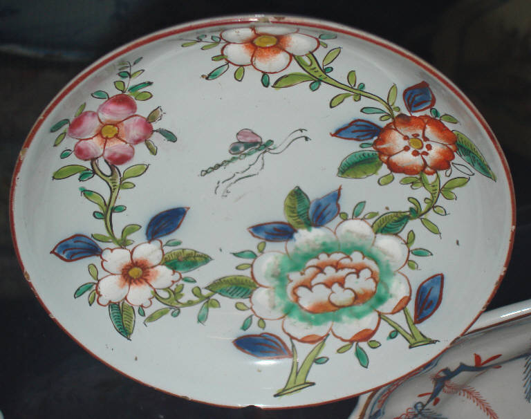 - NOTIZIE STORICO CRITICHE Il piattino da caffè rientra nella produzione ceramica milanese di Pasquale Rubati (e Felice Clerici ?) nota come a 'fiori in rilievo' alla barbottina, databile intorno al 1760-80. Pasquale Rubati, nella celebre supplica del 1762 alle magistrature cittadine milanesi, si fa vanto di fabbricare in esclusiva questa tipologia di 'maiolica a smalto o sia a rilievo il qual segreto non ritrovasi in nessuna fabbrica'. L'attribuzione a Pasquale Rubati si basa su alcuni pezzi di grande qualità che portano la sua firma (Gregoretti, 'Maioliche di Lodi, Milano e Pavia', 1964,n. 386).\nQuesto motivo decorativo semplice e di grande effetto è tra i più celebri della maiolica milanese. La sua peculiarità è nel rilievo dato ai petali, forse eco dei pezzi cinesi con decori floreali a rilievo, chiamati blanc de Chine.