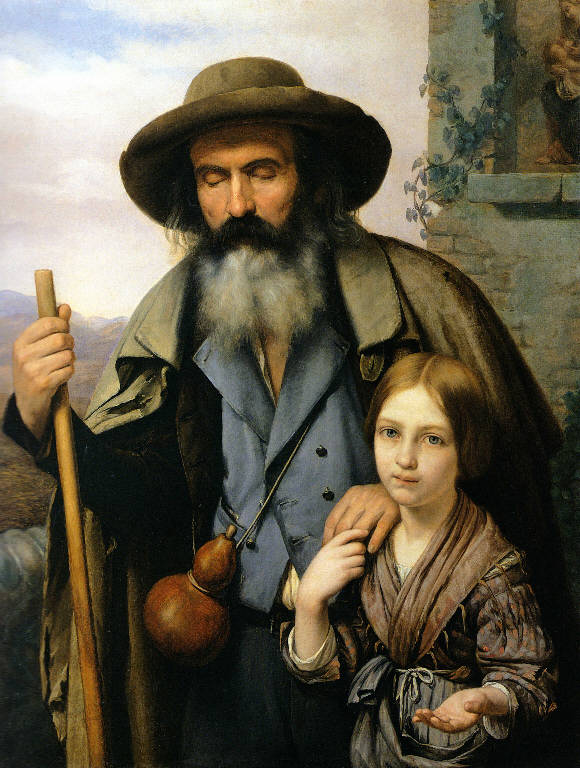 Il mendicante cieco. Mendicante con bastone