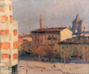 Veduta di Pavia da piazza Dante. Veduta di Pavia