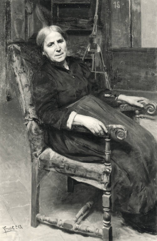- NOTIZIE STORICO CRITICHE Il dipinto è giunto alle collezioni museali dalla Civica Scuola di Pittura (inv. 177). La tela fu esposta nel 1927 alla I Mostra Provinciale di Belle Arti di Pavia e fu acquistata dal Municipio con i contributi del Comitato delle mostre d'arte pavesi e della Banca Popolare. Oltre a questo, il Bocca dedicò alla madre vari ritratti: un dipinto esposto alla Società Promotrice di Belle Arti di Torino, acquistato dalla Casa Reale (ora al Quirinale) e un'altro comparso in una successiva esposizione, divenuto poi proprietà del Museo Civico di Torino.