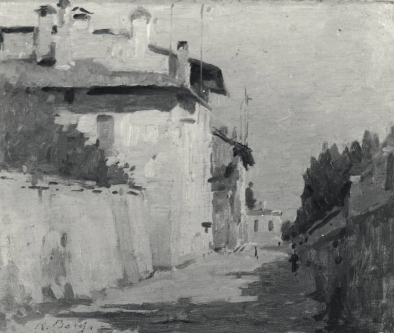 Veduta di una strada pavese (via S. Margherita). Veduta di via S. Margherita