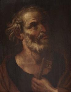 Il santo è raffigurato a mezzo busto, col viso di tre quarti leggermente rivolto verso l'alto. Nella mono sinistra, che sporge al di sopra del bordo inferiore della tavola, tiene una delle due chiavi, suo attributo specifico.